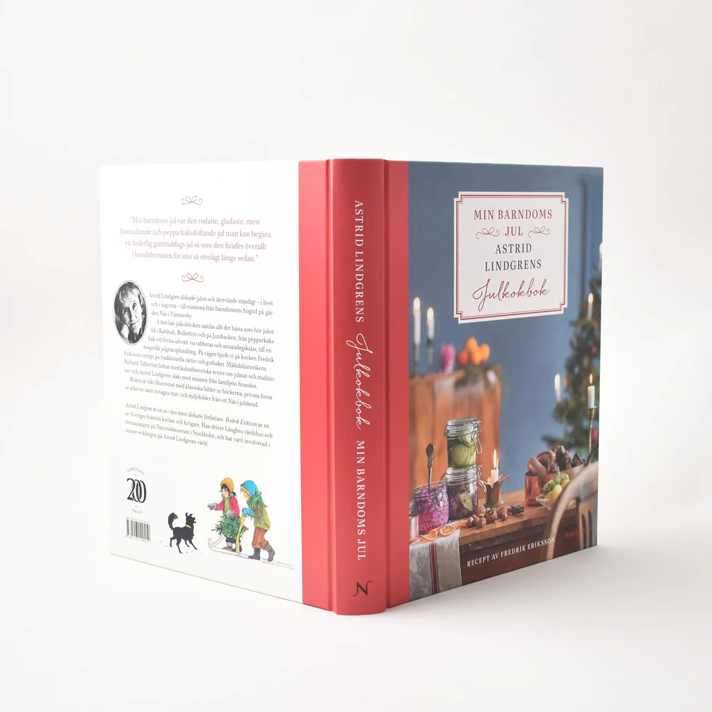 Min barndoms jul tar avstamp i pepparkaksbak med Bullerbybarnen vid första advent och sedan följer vi karaktärer, berättelser och Astrids egna traditioner genom högtiden, med tabberas och annandagskalas, fram till att Pippi avslutar firandet med en magnifik julgransplundring. På vägen bjuds vi på oemotståndliga recept på klassiska rätter och godsaker. Fokus ligger på julen i Småland under tidigt 1900-tal, i Katthult, Bullerbyn och Junibacken och framför allt Astrids eget barndomshem Näs. Men här finns också plats för avstickare till Saltkråkan, Bråkmakargatan och Dalagatan i Stockholm, där Astrid levde större delen av sitt liv. Måltidshistorikern Richard Tellström bidrar med kulturhistoriska texter om julmat och traditioner.