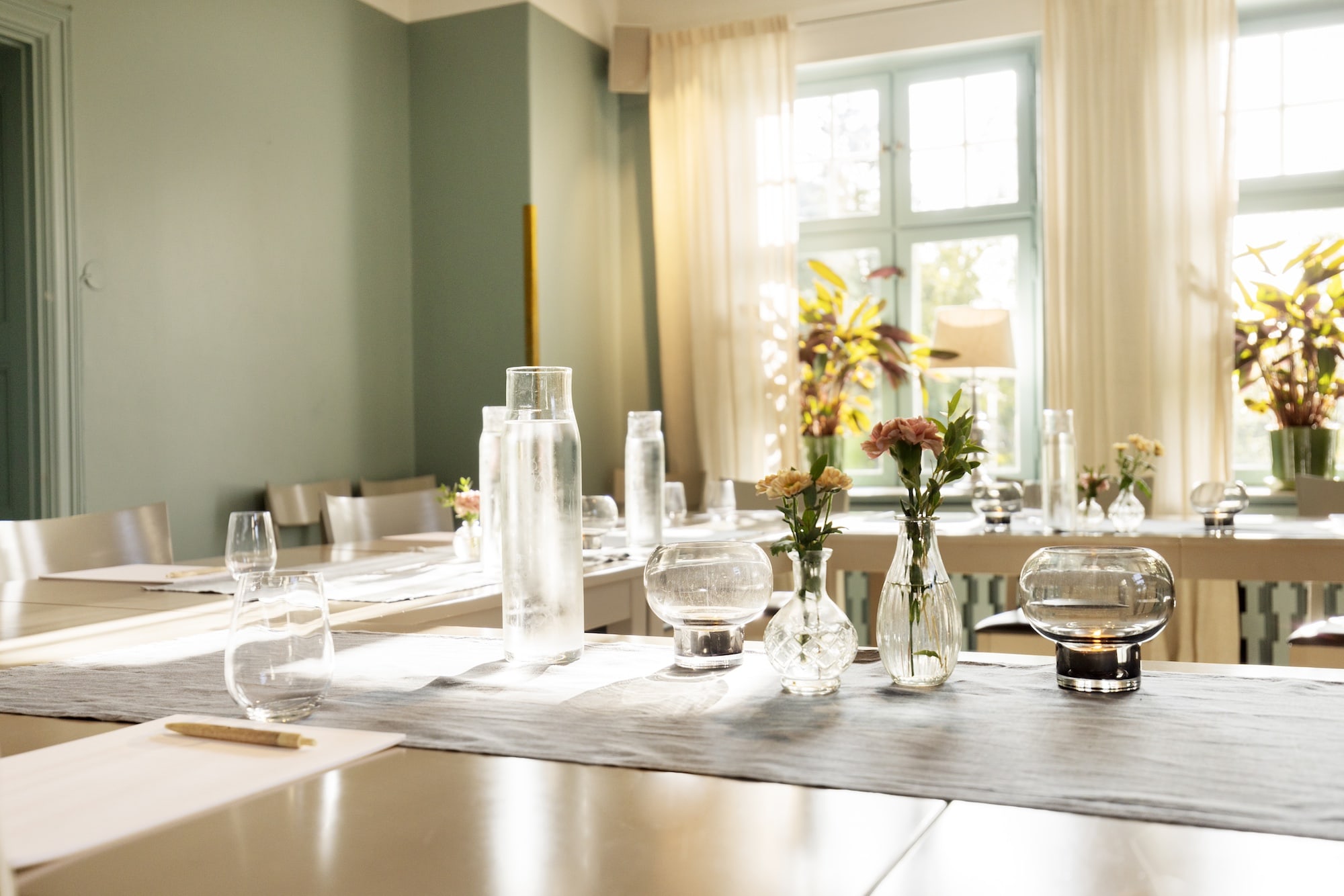 Värdshusets sekelskiftesvilla är en plats för dina samtal och möten där smaker och dofter från råvarorna är närvarande hela dagen. Inredningen är ombonad, sober och inbjuder till fokus, harmoni och kreativa möten.