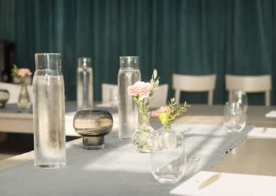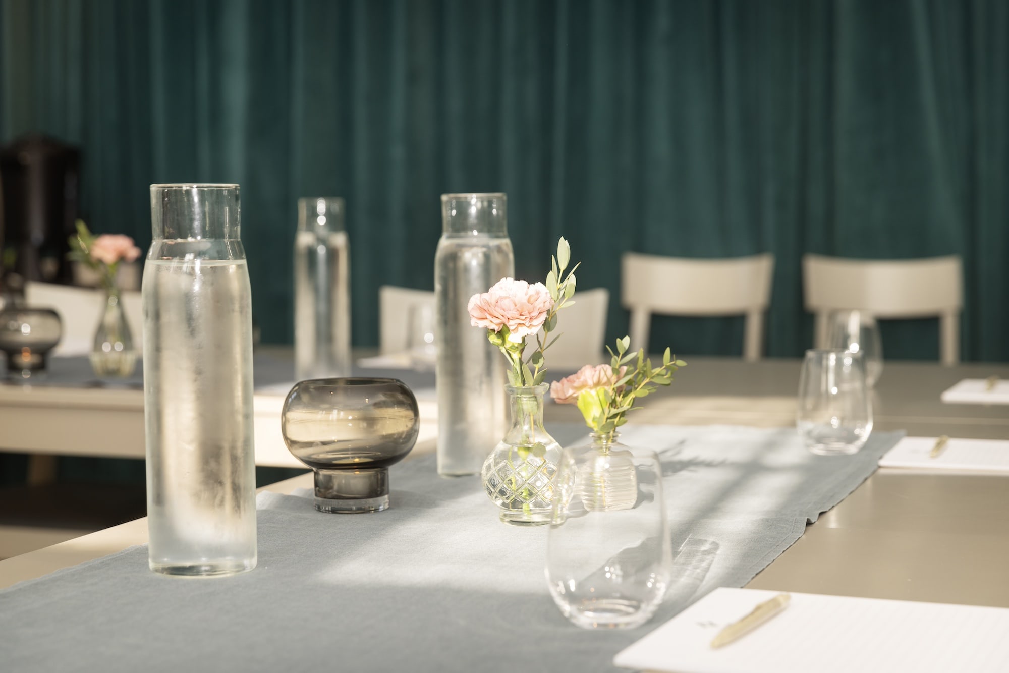 Vi dukar och förbereder inför ert möte med stilla eller bubbelvatten, som ni vill.