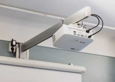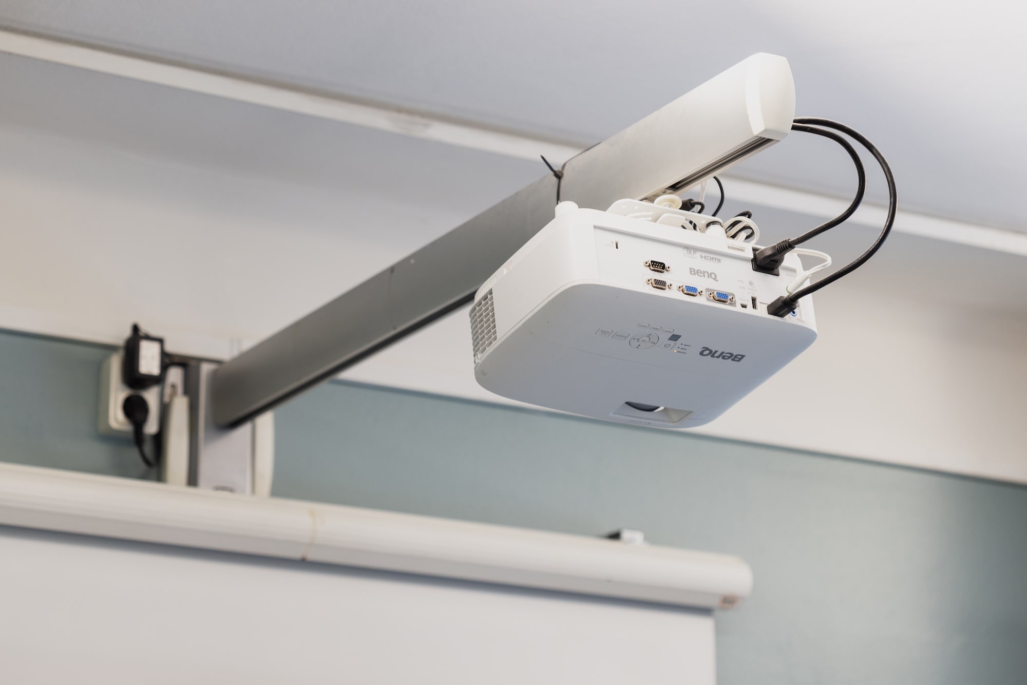 - Projektor, högtalare och whiteboard som går att gömma, blädderblock